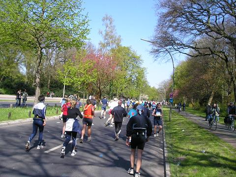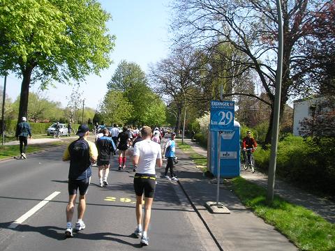 Kilometer 23,5: Saarlandstraße / Stadtpark Hmmm... einer läuft schon in die verkehrte Richtung... |