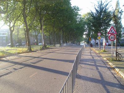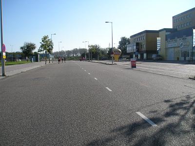 So eine dämliche Stichstraße. Am Kopf dieser kleinen Extrarunde lag eine sehr enge Wendekurve. Tödlich für jeden Rhythmus beim Laufen. Mich hat es nicht so sehr gestört. Haile Gebrselassie verlor hier seinen Weltrekord. |