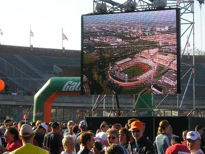 Schon etwas frustrierend, wenn man auf der großen Videoleinwand die Führenden schon bei Kilometer 20 laufen sieht. |