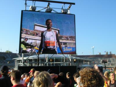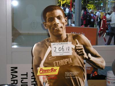 75 Minuten nach dem Ziel sahen wir ihn doch wieder: Haile Gebrselassie. Mit dem Weltrekord war es nichts geworden. Aber immerhin persönliche Bestzeit für ihn.
