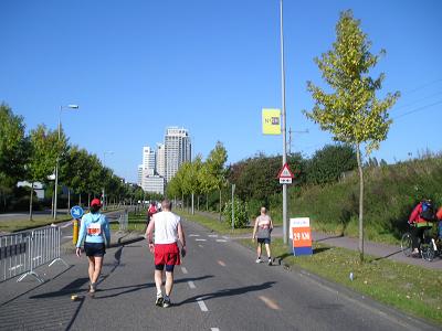 31,8: Galileiplantsoen (Amsterdam-Watergraafsmeer) Nun hatte ich mich so bemüht, möglichst lange zu joggen und danach flott zu gehen und hatte gegenüber meiner Zeit in Köln doch schon sieben Minuten verloren. Ganz schön frustrierend. Wo jetzt aber die Hoffnungen auf eine für mich gute Zeit begraben waren, konnte ich befreit weitergehen und die müden Knochen zum Ziel tragen. |