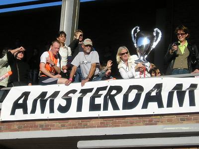 Den Pokal haben sich die Amsterdamer tatsächlich verdient. Der Marathon ist einfach klasse, auch wenn man an der einen oder anderen Stelle schon noch etwas am Kurs nachbessern könnte. Auch über die Sache mit dem Halbmarathon könnte man ja noch mal nachdenken. So unendlich breit sind die Straßen leider doch nicht. Trotzdem würde ich gerne eines Tages wiederkommen. Vielleicht ja 2010 zum 35. ING Amsterdam Marathon? |
