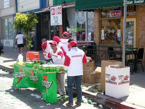 Boulevard 9.45 Uhr - Meile 7,5 Also für Verpflegung war auf jeden Fall gesorgt. Irgendwie konnte ich mich dann aber doch immer wieder zügeln und bin weitergelaufen. Wenn gleich ich natürlich für den Notfall ein paar Dollar dabei hatte. |
