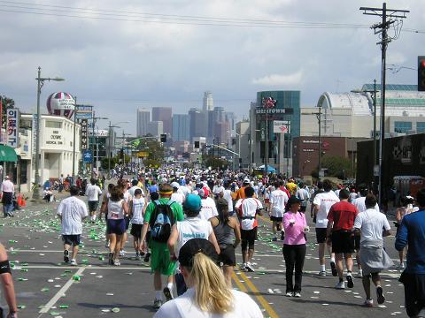 Auf die 26,2 Meilen hatte ich mich vorbereitet, die 9 Stunden Zeitdifferenz zu Deutschland in einer Woche verarbeitet und mich an den Smog gewöhnt. Aber auf die gewaltigen Büro- Giganten in Downtown LA war ich nicht vorbereitet. |