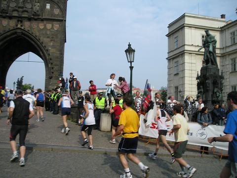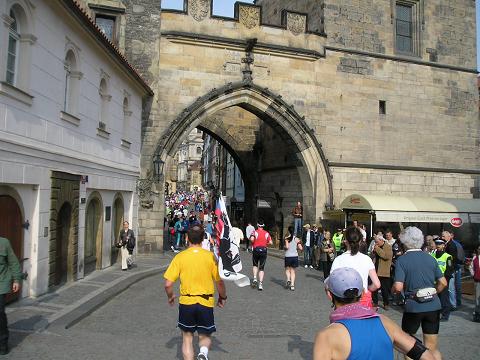 Kilometer 1.2: Altstädter Brückenturm Die Kurve hinauf zur Karls- brücke. Hier standen auch die meisten Leuten und es kam so richtig gute Stimmung auf. |
