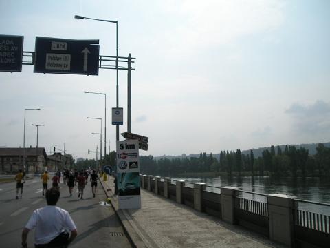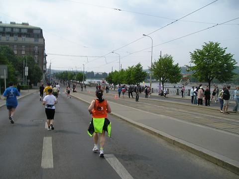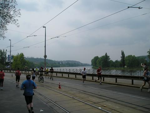 Kilometer 14: Rasinovo nabrezi Auf der Gegenseite kamen uns jetzt die Läufer entgegen, die gerade bei Kilometer 23,5 waren. Jetzt ging es auf die Prager Schleifen. |