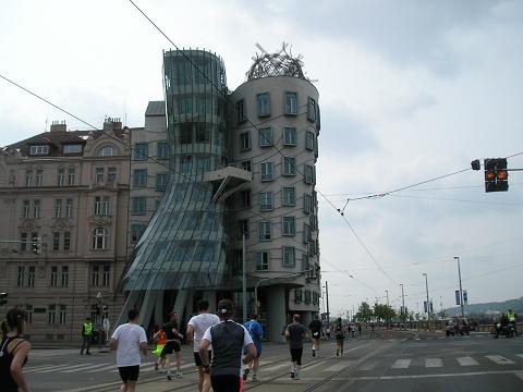 Kilometer 13,7: Jiraskovo namesti / Das tanzende Gebäude Für mich lief es immer noch gut. Ich hielt meinen gewohnten Schnitt von 6:40 Minuten pro Kilometer gut ein. |