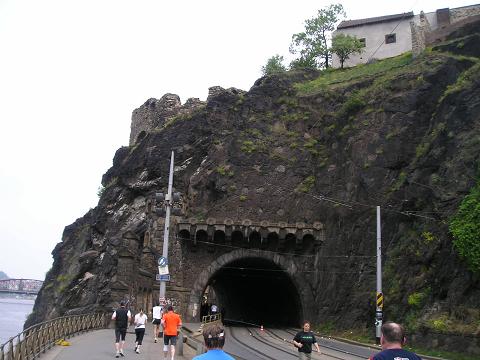 Kilometer 22,5: Vysehradsky tunel Bei Kilometer 22 mußte ich das Laufen aufgeben. Jetzt ging es gehend weiter. Der Magen ließ mich einfach nicht in Ruhe. Nie wieder McDonalds am Vortag eines Marathons. |