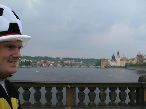 Kilometer 40,5: Most Legii / Legionsbrücke Die Karlsbrücke in der Ferne und ein fröhlicher Falko im Vordergrund. |