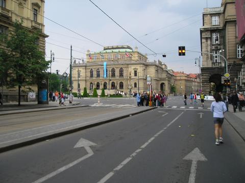 Kilometer 41,4: Namesti Jana Palacha / Rudolfinum Auch hier am letzten Kilometer in der Altstadt praktisch keine Zuschauer an der Strecke. Nur ein paar desinteressierte Turistengruppen verirrten sich auf dem Kurs und genossen die autofreie Atmosphäre. |