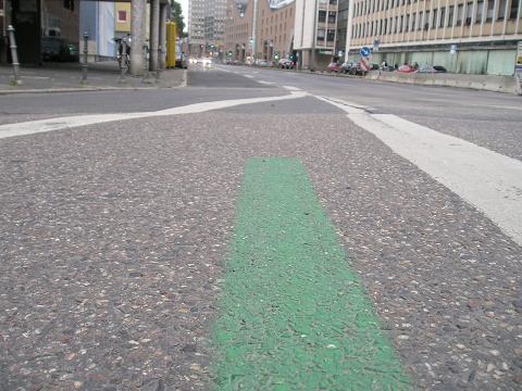 Oh je... grüne Stiche als Weg- markierung für den Marathon. Nach Blau (Hamburg) und orange (Amsterdam) nun noch eine Farbe zum Gewöhnen... |