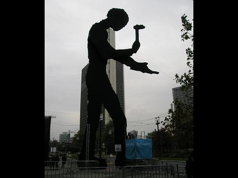 Jonathan Borofsky, die die Silhouette eines Arbeiters darstellt. |