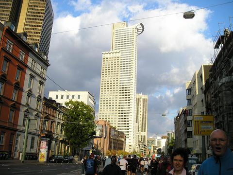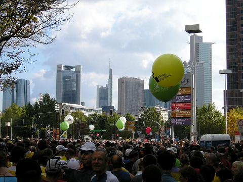 Landstraße Kilometer 0,5 Gleich nach dem Start ging es ins Bankenviertel. Hier wurde man nicht nur von den Türmen sondern auch noch von den Zuschauermassen geradezu erschlagen. |