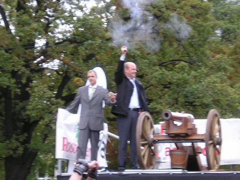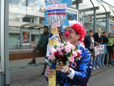 Landstraße Kilometer 0,6 Hier links meine "Freundin" Heike, die mir schon dieses Jahr in Hamburg aufgefallen war und von deren Kostüm ich mir meine Prag-Verkleidung abgeguckt habe. |
