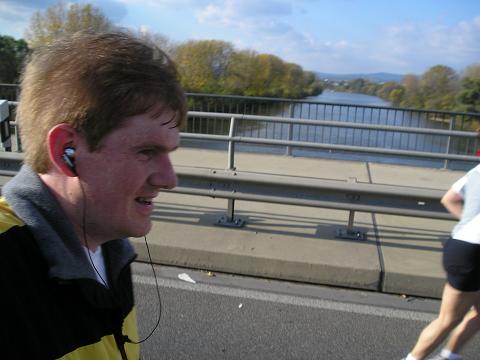 Brücke Kilometer 26 Nun wurde es hart. Der Anstieg die Brücke hinauf zog sich in die Länge und der böige Wind tat sein übriges. Aber noch war ich am Laufe. |
