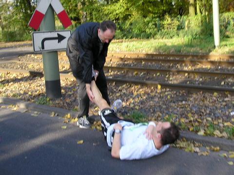 Landstraße Kilometer 28,4 Die Zuschauer wurden auch schon mal zu Ersthelfern. Um den Krampf bin ich herum gekommen, wenn gleich es diesmal doch arg zwickte und zwackte, was ich in dieser Form noch nie erlebt habe. Aber wie gesagt, diesmal ging alles gut. Toi. Toi. Toi. |