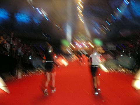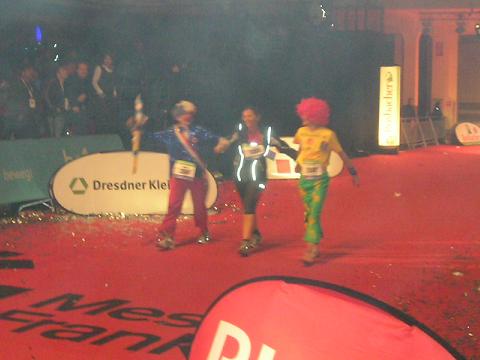 Festhalle 16.53 Uhr Den letzten Finishern wurde die Ehre zu Teil, von Michel Descombes und dem Pumuckel (der lief die ganze Strecke barfuß!!) über den roten Teppich begleitet zu werden. |