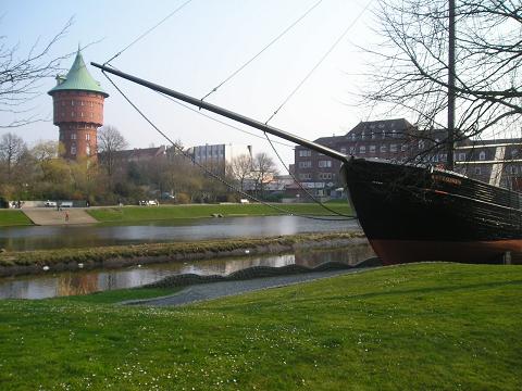 Cuxhaven-Zentrum Der Wasserturm und die "Hermine" |