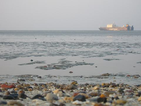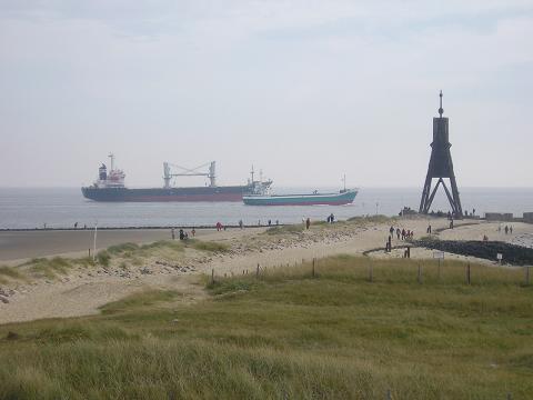 | In der Grimmershörner Bucht, Blick auf den Schifffahrtsweg der Elbe | |