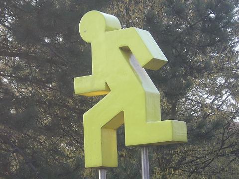 Mit Cuxhaven verbindet man ja eigentlich eher Sonne, Strand, Watt und Meer. Und vielleicht noch den Kurbetrieb. Aber Laufen? Warum eigentlich nicht werden sich die Stadtväter gesagt haben und versuchten es einfach mal. So stand Cuxhaven Anfang Frühling 2007 ein Wochenende ganz im Zeichen des Laufsports. Foto: Läufer-Skulptur im Zentrum Nähe Wasserturms |