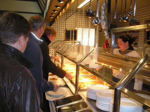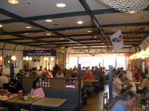 | Die Pasta-Party fand im Hertie- Restaurant statt. Hier gab es reichlich Verwirrung, denn die Veranstalter erzählten immer vom Karstadt-Restaurant. Nun wissen aber nur Einheimische, daß es sich dabei um ein und dasselbe Restaurant handelt, nur daß seit ein paar Wochen halt "Hertie" dransteht. | |