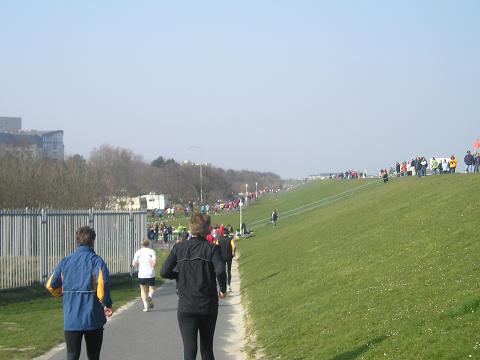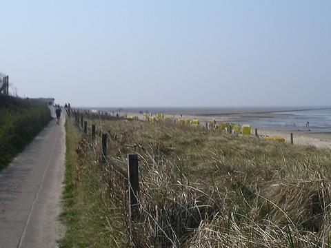 4,5 / 10.56 Uhr Deichverteidigungsweg beim Fort Kugelbake Hier ging es über den Deich auf die Landseite. Kommentar eines Mitläufers: "In der Ausschreibung stand aber nichts von einer alpinen Bergwertung". |