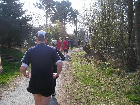 10,5 / 11.32 Uhr Am Wehberg Auf so schmale Wege könnte man das Feld eines Hamburg- Marathons nicht schicken. Ich war sehr schnell unterwegs. Eigentlich zu schnell. Bei einem gedachten Lauftempo von 6:40 oder 6:30 Minuten pro KM war 5:45 bis 5:50 doch arg flink. Aber das Tempo machte mir keine Probleme. So ließ ich dieses "Wohlfühltempo" auch gewähren. |
