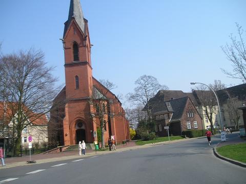 37 / 14.14 Uhr Strichweg / Herz-Jesu-Kirche Was ich jetzt brauchte war eine weitere Verpflegungsstelle. Fast wäre ich hier um die Ecke in die Tankstelle gelaufen, aber da standen zu viele Ordner. So mußte ich noch zwei Kilometer durchhalten. Zwei quälend lange Kilometer. Als ich dort dann aber endlich etwas Coca- Cola bekam, ging es langsam wieder aufwärts. |
