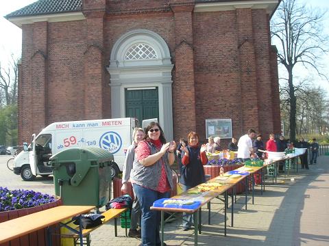 41 / 14.50 Uhr Kirche St.-Martin / Südersteinstraße Und kurz hinter dem Stand bei Kilometer 39 kam ja gleich noch einer. Hier noch schnell etwas Stärkung und danach zurück vom Gehen ins Laufen und den hier schon so gut wie sicheren neuen Rekord ins Ziel bringen. |