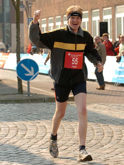 42,195 / 14.59 Uhr Kaemmererplatz Ich war glücklich mit dem Lauf und der Zeit. Und selbst mein bis dahin eher marathonskep- tischer Vater kann es nun gar nicht mehr abwarten, daß der 2. Sparkassen City Marathon Cuxhaven startet. Vielleicht ja schon 2008. |