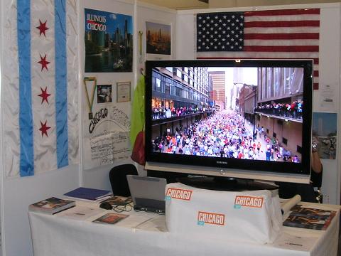 Freitag, 27.April 2007 Hamburg-Messe Auch dabei ein Stand vom Chicago- Marathon, der am 7. Oktober 2007 den Höhepunkt meines Laufjahres darstellen wird. Hier am Fernsehen konnte ich die 26,2 Meilen schon einmal in Zeitraffer miterleben. |