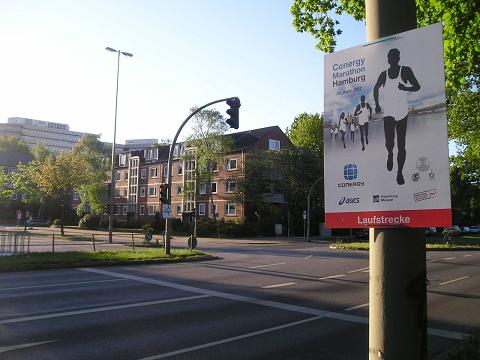 Sonntag, 29. April 2007, 7.25 Uhr Hindenburgstraße, Alsterdorf Die Ruhe vor dem Sturm. Circa drei Stunden noch bis hier die ersten Läufer vorbeirasen werden. Und circa fünf Stunden, bis ich dann auch kommen würde. |