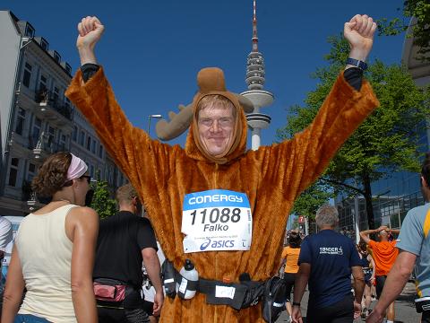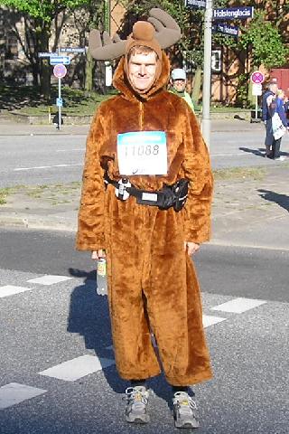 4:43:50 Stunden. Den alten Rekord für Hamburg locker um 10 Minuten unterboten. Aber egal. Hinter mir lag ein Riesenspaß im Elch-Kostüm und ein für mich völlig schmerzfreies und problemloses Rennen. Beim nächsten Rennen werde ich dann wieder genauer auf die zeit achten.