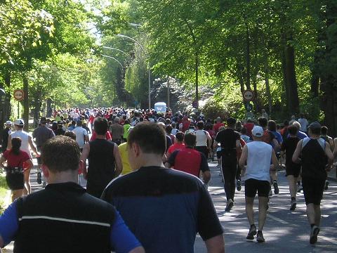 12.42 Uhr / Kilometer 30,5 Rathenaustraße Fröhlich lief ich auch hier nach der kurze Verpflegungspause wieder an. Von Müdigkeit keine Spur. Von Überheblichkeit aber auch nicht. Nie werde ich vergessen, wie ich bei meinem ersten Marathon im Jahr 2000 besonders auf dieser Straße gelitten und vor Krämpfen gezittert habe. |