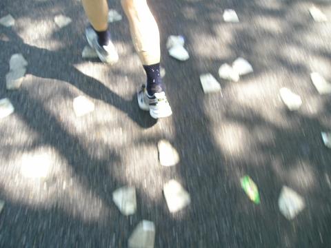 12.41 Uhr / Kilometer 30,5 Rathenaustraße Das sind so die "Kunstfotos", die man nur dank der wahnsinnigen Auslöseverzögerung der Digital- kamera macht. Dies hier entstand kurz hinter der Verpflegungsstelle bei Kilometer 30. ich sah von hinten übrigens genauso verdreckt aus. Wo kommt der Mist bloß her?? |
