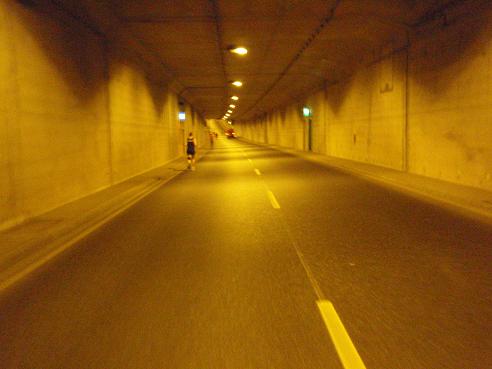 Warnowtunnel Kilometer 22,5 / 20.15 Uhr Und nun kam zum zweiten Male der Warnowtunnel mit seiner langen Steigung nach einem langen Gefälle, wobei ich beim zweiten Durchlauf nicht mal mehr sicher war, welcher Teil eigentlich der schwerere war. |