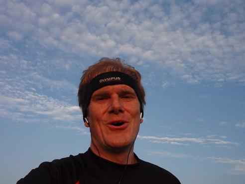 Schmarl-Dorf Kilometer 21,5 / 20.08 Uhr Im Lichte der untergehenden Sonne mit dem Himmel im Hintergrund. Ein Selbstbildnis zu einer Zeit, als es mir mal wieder so richtig gut ging. Allerdings lag der schwere Part auch noch vor mir |