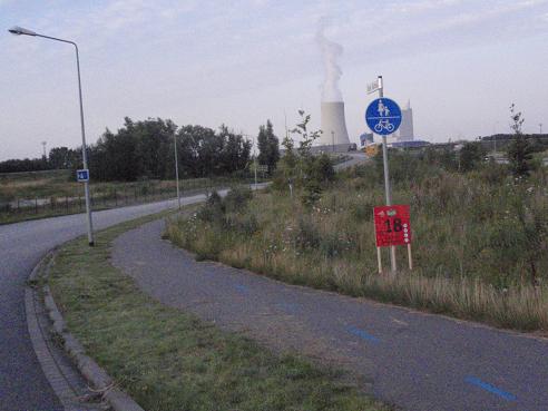 Up'n Warnowsand Kilometer 14 / 19.17 Uhr Da gab es soviel Platz und trotzdem immer wieder die Autoabgase. Es gab immerhin keine sonstigen Behinderungen durch die Autos. Wo ich gerade bei "Abgasen" bin: Im Hintergrund das immer wieder gegenwärtige Kraftwerk Rostock- Ost. Kohlekraftwerk. |