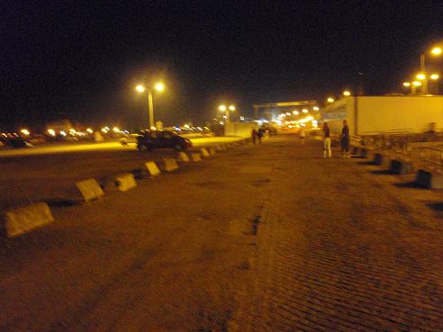 Stadthafen Rostock / Am Strande Kilometer 40,5 (?) / 22.28 Uhr Der Zeit nach war ich bei Kilometer 39,5 oder so. Aber kurz zuvor stand ein Schild 2. Also noch 2 Kilometer bis zum Ziel = KM 40,2. Mir war es fast schon egal. Frustriert hatte ich schon eine Viertelstunde zuvor das Laufen aufgegeben und mich aufs Gehen beschränkt. Und ehrlich gesagt: dieser Holperweg über einen Parkplatz, wo auch noch ständig Autos herumrangierten, hob meine Laune nicht im geringsten. |