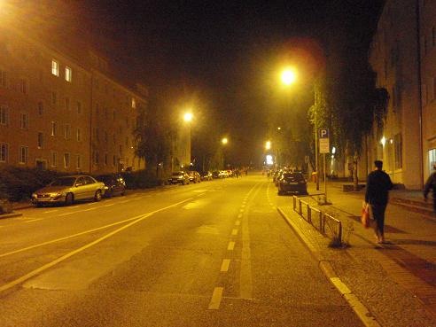 Am Petridamm Kilometer 36 / 21.55 Uhr Endlich wieder in der Stadt. Nicht, daß das Laufen außerhalb schlimm gewesen wäre, aber es war doch bereits deutlich dunkler, als es die Fotos (ISO 1600) hier vermuten lassen. Die armen Läufer, die jetzt noch auf den unbeleuchteten Wegen hinter mir unterwegs waren. |