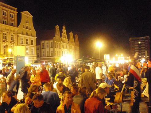Neuer Markt Kilometer 0,1 / 18.00 Uhr Kurz nach dem Start war noch richtig Stimmung an der Strecke. Mein Ziel war einfach: Ankommen. Ursprünglich war Rostock zwar als neuer Rekord-Versuch angedacht, aber nach versauter Vorbereitung war das vergessen. |