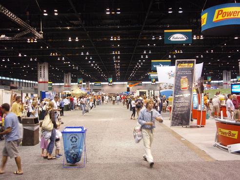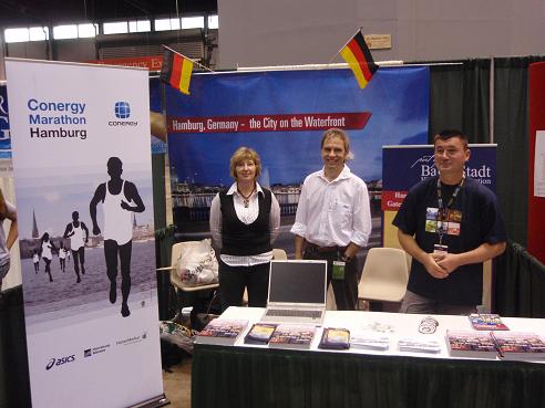Natürlich fand auch im Zuge des Chicago-Marathons eine Messe statt. Dort konnte man schon einmal in Highspeed den Kurs auf der Videoleinwand bewundern. Ein klein wenig größer als die meisten anderen Marathon- Messen war es schon, aber nicht größer als unsere Messe in Hamburg. :-) |