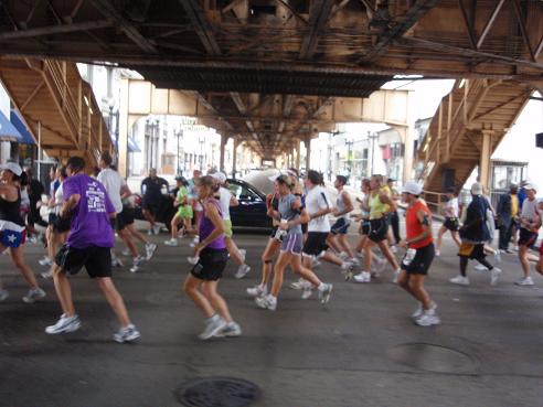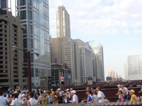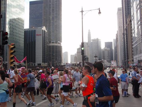 North LaSalle Street Meile 3,0 / 8.46 Uhr 32:34 Minuten bei Kilometer 5. Macht 6:31 Min./KM. Nicht sehr schnell, aber auch nicht schlecht. Seltsam: In Chicago wird zwar die Strecke in Meilen gemessen, aber die Zwischenzeiten werden alle 5 Kilometer genommen. Plus beim Halb-Marathon natürlich. |