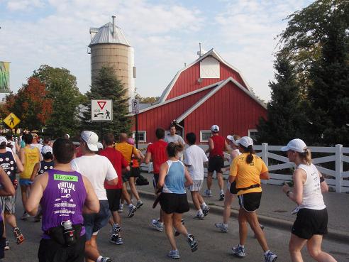 nord-westlich von Chicago 07. Oktober 2007 Soweit zur Frage, ob es zum Start des Marathon nur 21°C waren. Schon eine Stunde VOR Sonnen- aufgang waren es 24,5°C. Zudem eine Luftfeuchtigkeit, die mich schon auf dem Weg vom Hotel zur Bahnstation völlig aus den Schuhen warf. Eine Dusche im Zug wäre ganz nett gewesen.