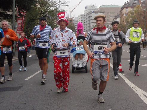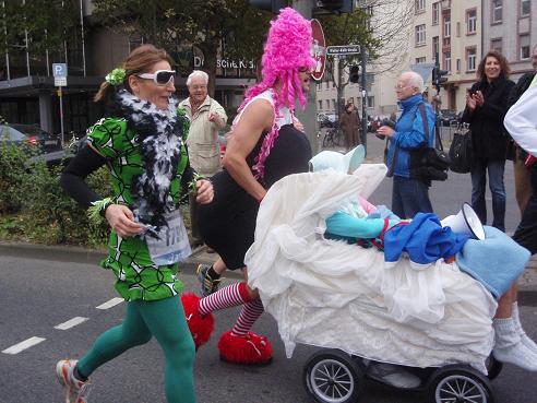| Walter-Kolb-Straße Kilometer 13 / 11.26 Uhr Noch mehr Kostüme. Und der mit dem Kinderwagen kam auch tatsächlich durch. |