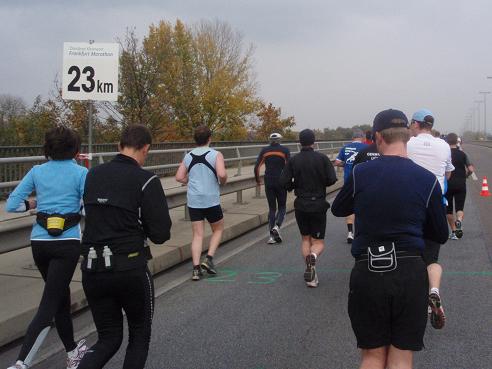 Frankfurt Kilometer 42,1 / 14.57 Uhr Geschafft. 4:46:48 Stunden. Mein zehnter Marathon in Folge unter fünf Stunden. Es war gegen Ende ein ziemlich harter Lauf, aber insgesamt war es doch ein toller Spaß, noch einmal als Elch auf der Strecke zu sein. Nun ist erst einmal 13 Wochen Marathon-Pause. Dann beginnt die 2008-Saison mit dem Lauf im Elbtunnel. |