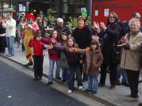 | Oeserstraße Kilometer 28 / 13.00 Uhr Nicht nur bei der Evangelischen Christuskirchengemeinde standen die Kinder und hofften auf einen Läufer, der sie abklatschte. Ich bemühte mich, möglichst alle Kinderhände zu fangen, das war so einfach aber auch nicht. |
