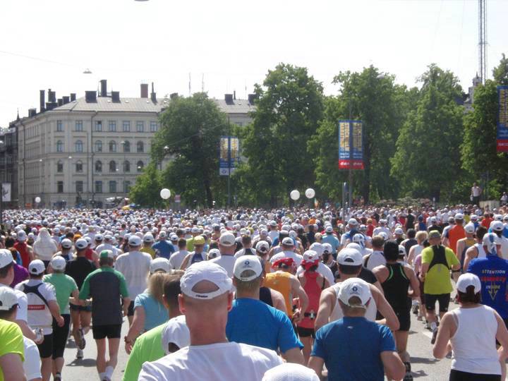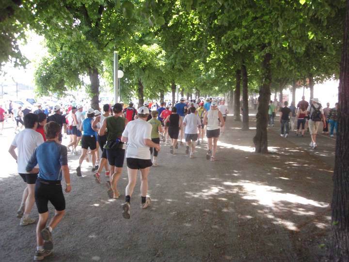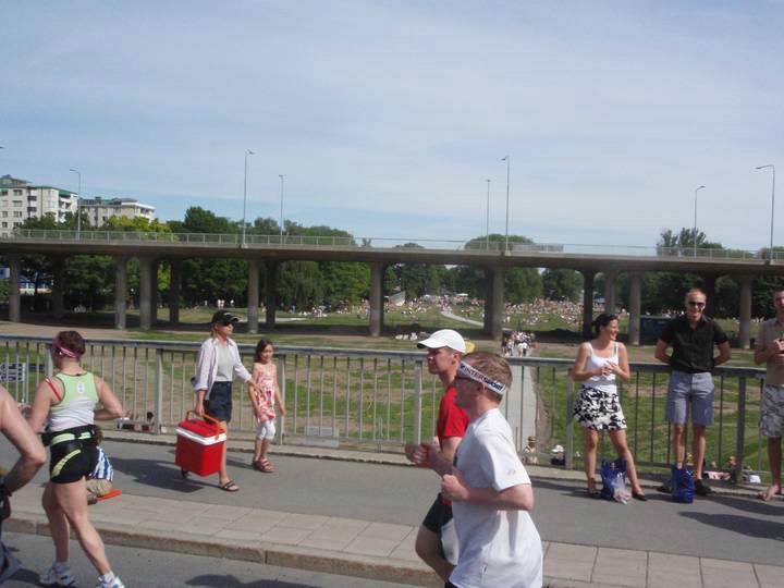 7 / 14.46 Uhr Strandvägen Es war kein Wunder, daß viele Läufer hier einfach die reguläre Strecke verließen und etwas weiter rechts den Schatten suchten. |