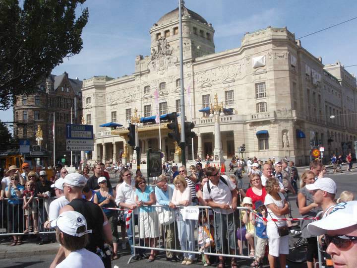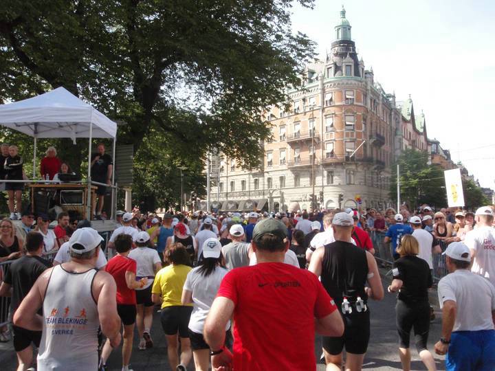 16 / 15.42 Uhr Vasagatan Vor Stockholms Central (dem Hauptbahnhof und Sitz von SJ, dem Hauptsponsor) wurde es dann wieder eng. Hier standen die Zuschauer in Massen. Wirklich allein war man aber auch sonst nie auf der Strecke. Selbst oben auf der Västerbron standen Leute und klatschten. |