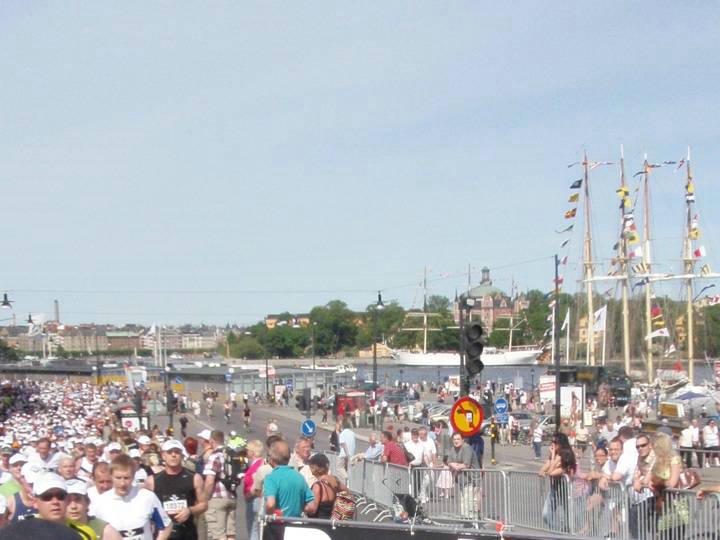 10 / 15.05 Uhr Söder Mälarstrand Wer kann da denn noch in Ruhe laufen, wenn sich rund um einen herum ein solcher Anblick bietet? Naja... den meisten Läufer gelang es trotzdem. Sonst hätte es auch viel mehr Unfälle gegeben. |